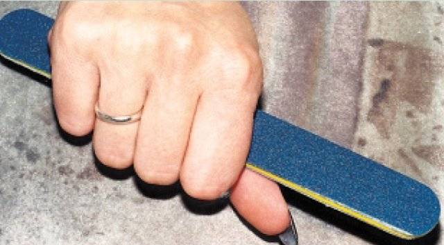 Правильно держать пилку для ногтей как ложку (фото 7). Так без напряжения большой палец руки оказывает несильное давление на рабочую поверхность.