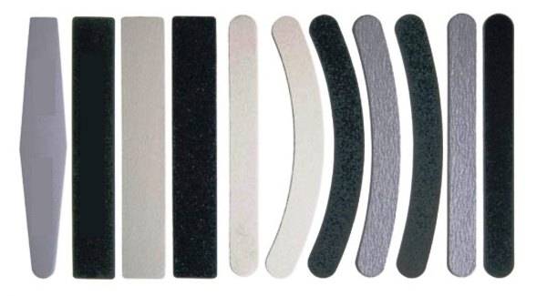 - Пилочки. Они должны быть разные. Мягкие – для придания блеска, средние – для полировки. Самые жесткие пилки используются для формирования ногтя.