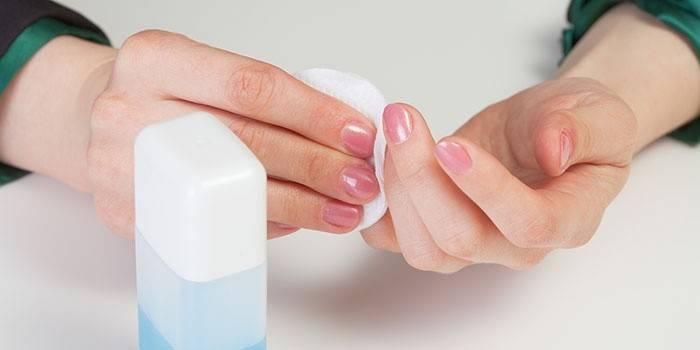 Сначала руки обрабатывают антисептиком или антибактериальным мылом. Потому что перед выполнением европейского ухода не нужно делать распаривающую ванночку. Старое покрытие, если оно присутствовало на ногтях, удаляют специальной жидкостью. Больше всего времени понадобится на обработку шеллака. Средство нужно выдерживать 10-15 минут. Наносят на кутикулу ремувер и оставляют на некоторое время. Точный период выдержки зависит от производителя. Вот почему перед использованием ремувера нужно ознакомиться с информацией. По истечении указанного времени остатки ремувера стирают ватным диском, а пушером или палочкой соскребают размягченную кутикулу. По завершении обработки наносится питательное масло