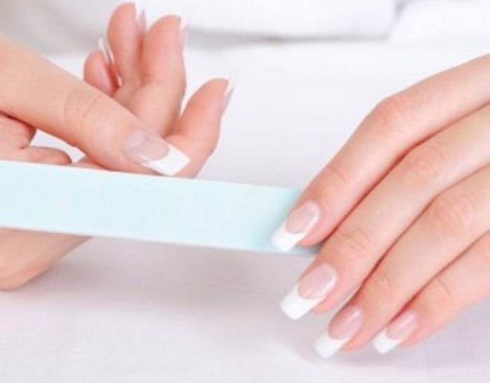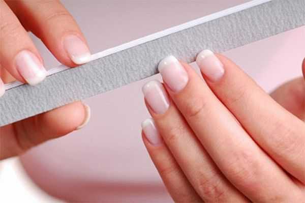 При любом маникюре ногти подпиливают в одном направлении, дабы не повредить ногтевые пластины. Лучше не подпиливать их с боков. Пилка всегда держится под прямым углом, ведется неширокими взмахами от края до центра ногтя, но не наоборот. Для придания формы понадобится мягкая пилка.