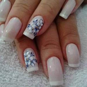 Не менее популярный рисунок, который отлично смотрится в сочетании с френчем – флористический. Опытные нейл-мастера делают потрясающие шедевры с помощью нескольких кистей и акриловых красок.