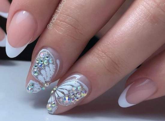 Французский маникюр в белых тонах шеллаком