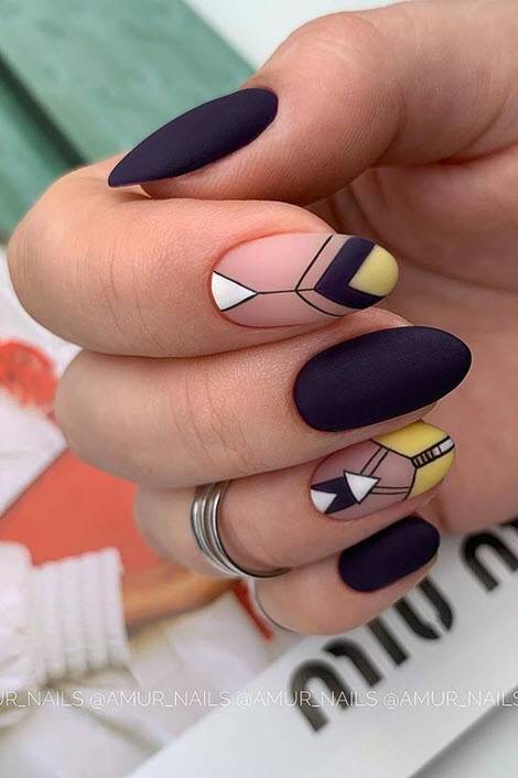 Отличие от классики – в форме оформления зоны края ногтя в виде линий, треугольников, ромбов и других геометрических фигур.