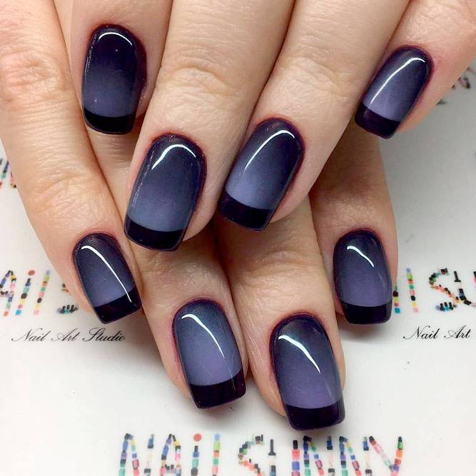 У вас получился необычный френч на ногтях, который смотрится эффектно. Темные оттенки не смотрятся вульгарно, а элегантно и добавляют образу загадочные и притягательные нотки.