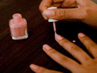 - покройте ногти нежно-розовым лаком, дождитесь его высыхания;