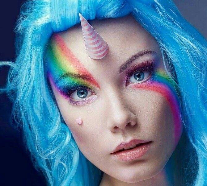- Вместо теней можно использовать специальные краски для фантазийного макияжа. Они имеют идеальную текстуру и легко наносятся.