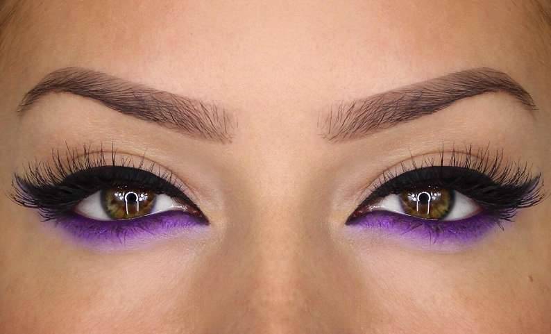 В тренде создание акцента на нижнем веке, вместо верхнего, где можно нанести немного пастельного оттенка. А внизу преобразить глаза ярким принтом в виде подводки тенями или мягким карандашом с переливающимися частицами.