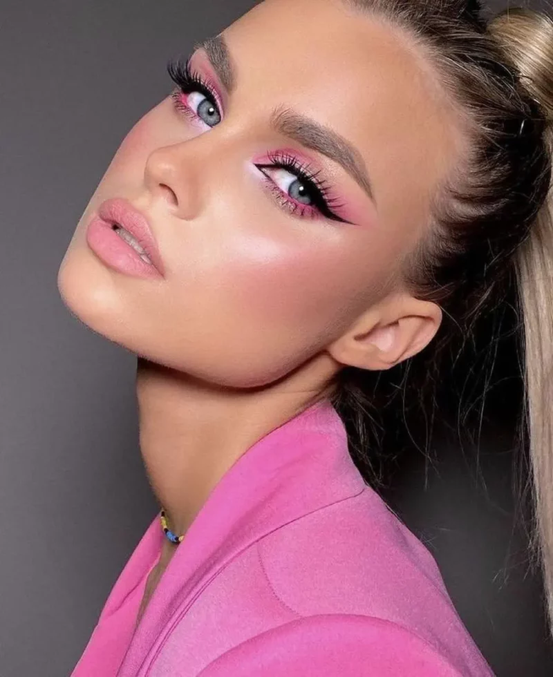 Ярко-розовые румяна отлично подчеркивает свежесть и придает лицу здоровый и яркий вид, кроме того заметно омолодят образ в целом.