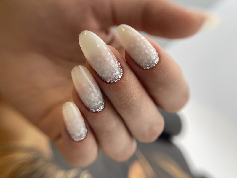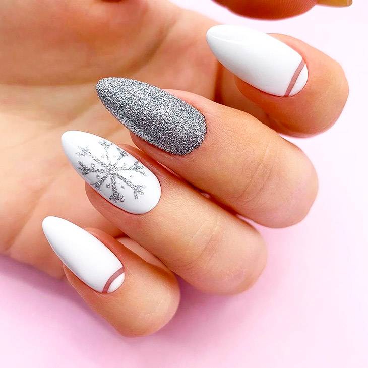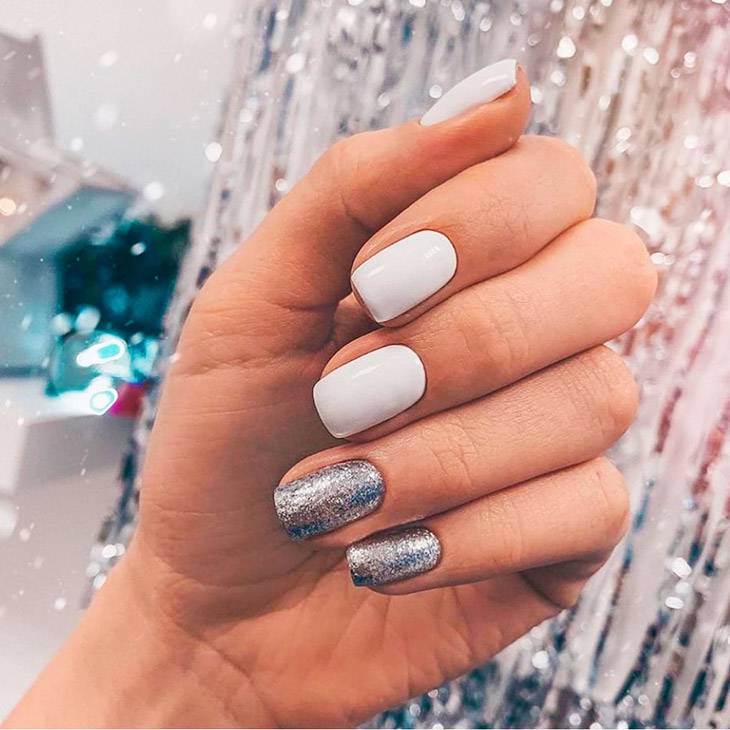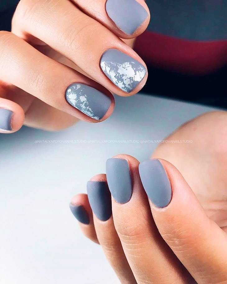 - Большой популярностью в нейл-дизайне будут пользоваться металлические глиттеры. Популярным выбором для этого образа будет фольга, которая придаст внешнему виду мягкий, красивый металлический эффект.