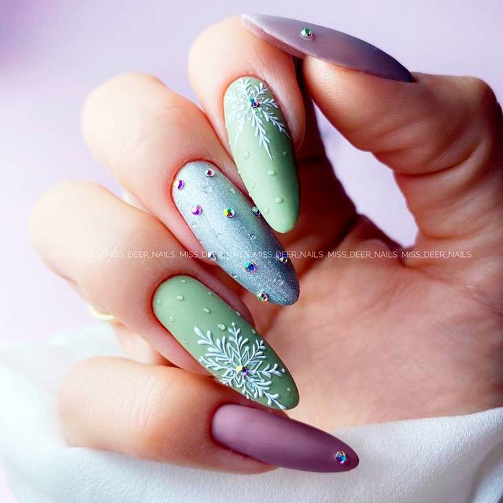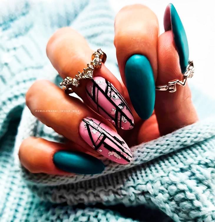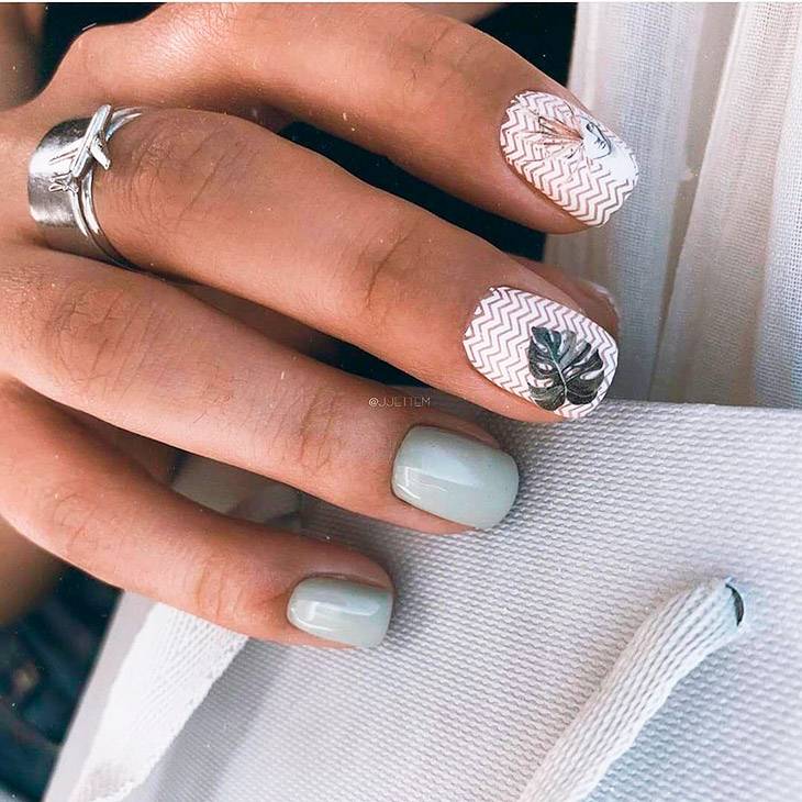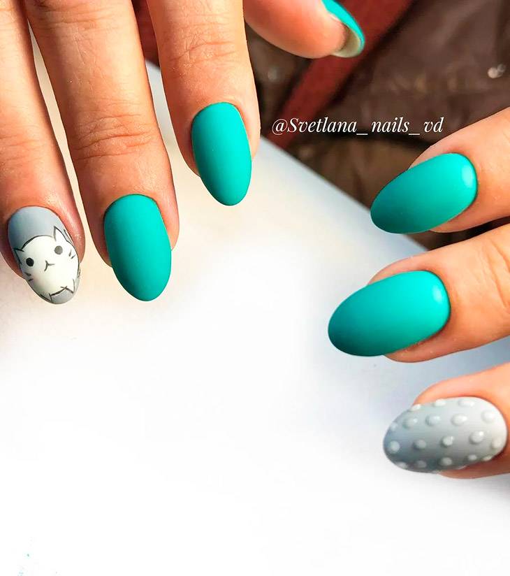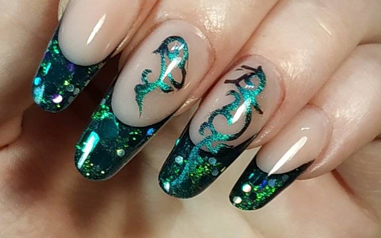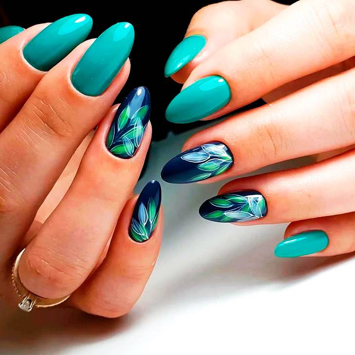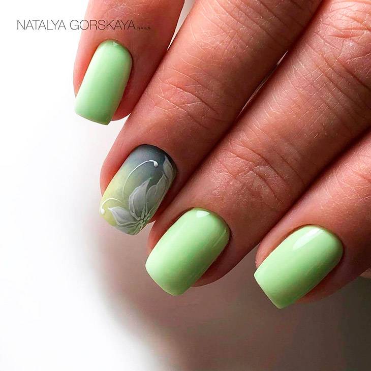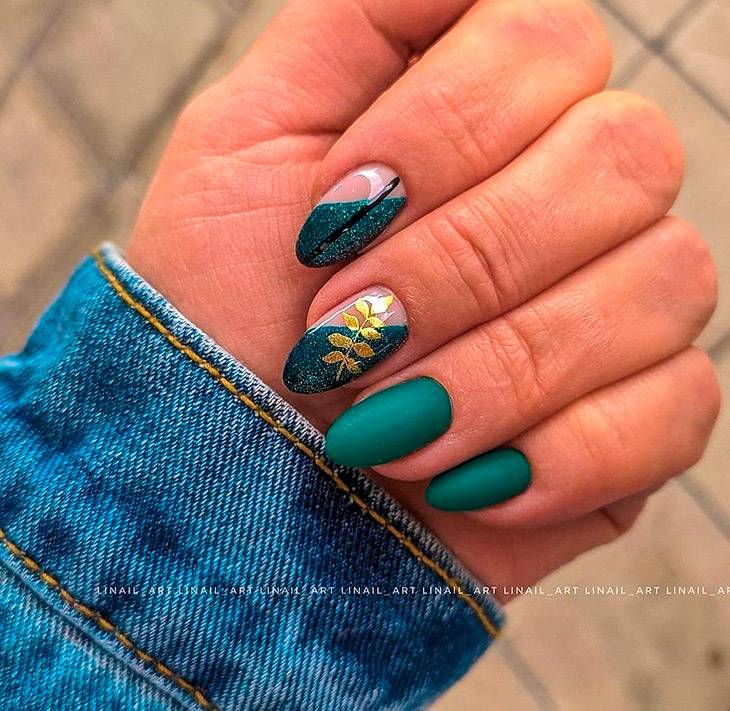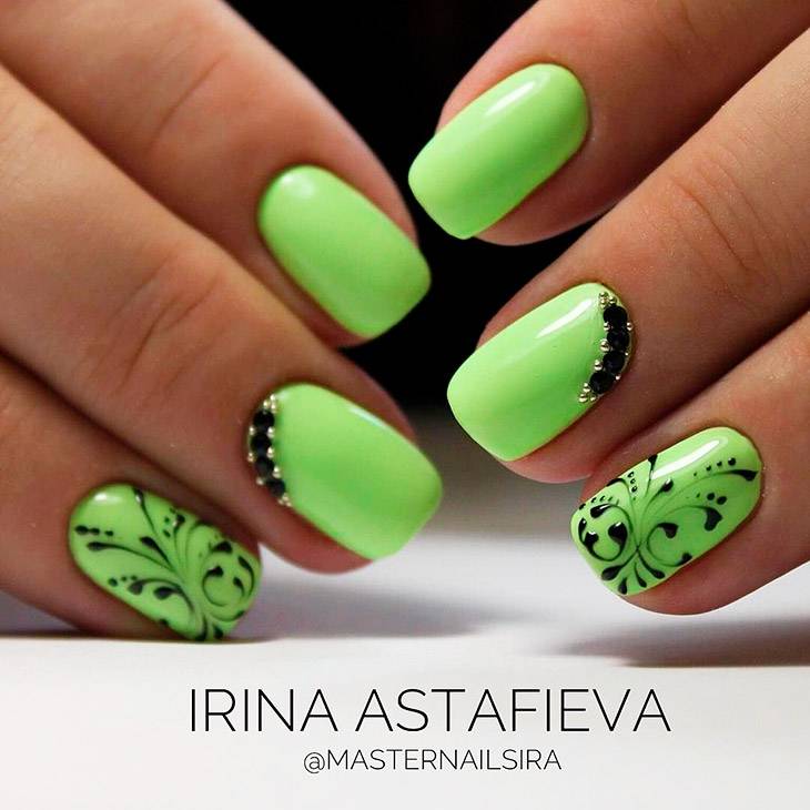 Комбинировать маникюр с зелёным нужно осторожно. Тон уместно сочетать в качестве акцентов