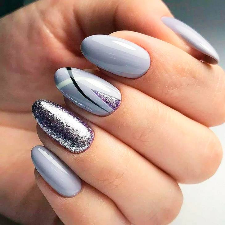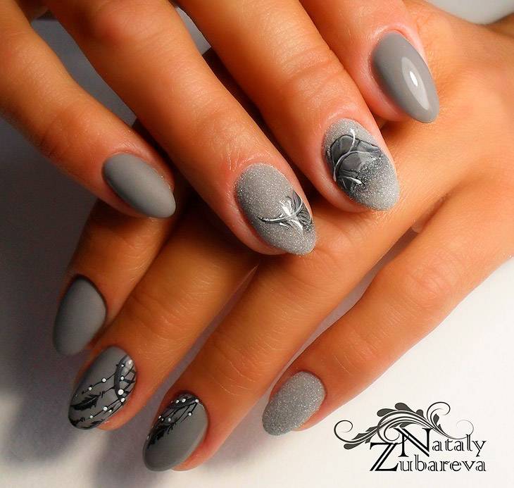Популярное использование серых лаков – основа под нейл-арт. С серым цветом гармонируют актуальные трендовые оттенки на сегодняшний день: красный, желтый, коричневый.