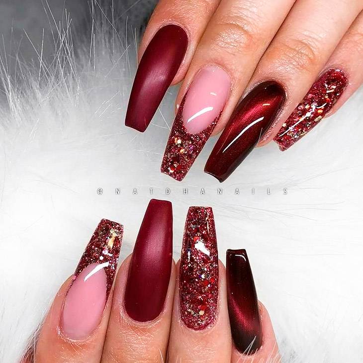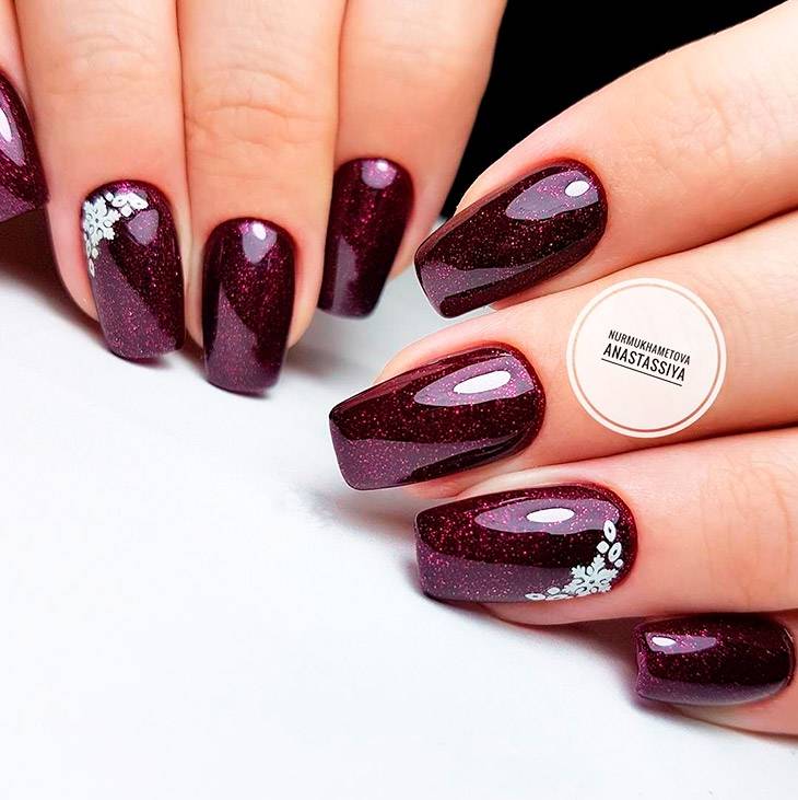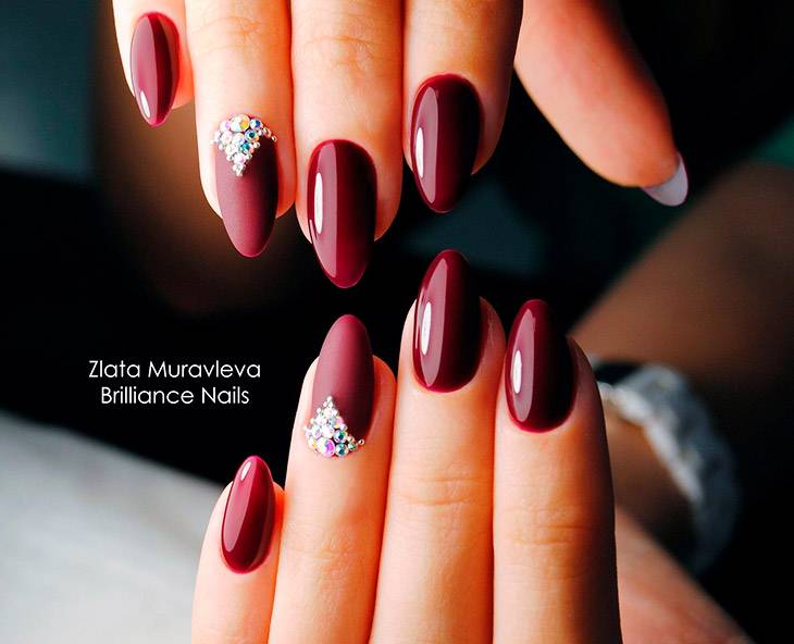 Можно выбрать матовую фактуру, изящные цвета марсала, бордо, изумруд, а также небольшое количество красивого сияющего декора.