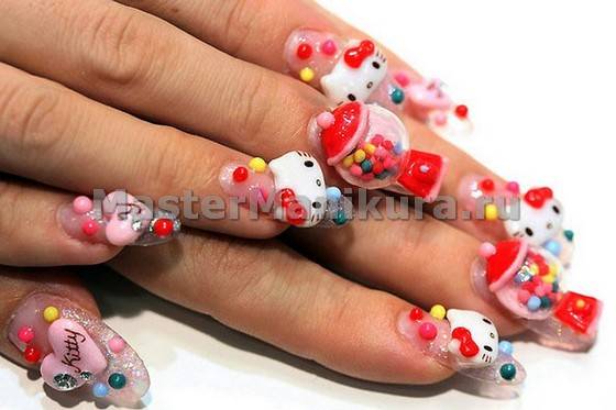 - На последнем месте находятся различные пластиковые украшения. Этот стиль получил название японского, так как только в этой стране принято использовать такое количество декора на ногтях. Большинство наших женщин, делая своими руками удобный и практичный маникюр, предпочитают не перегружать ногти.
