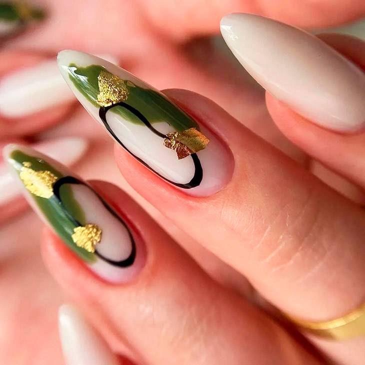 Новинки дизайна ногтей 2024 миндалевидной формы: