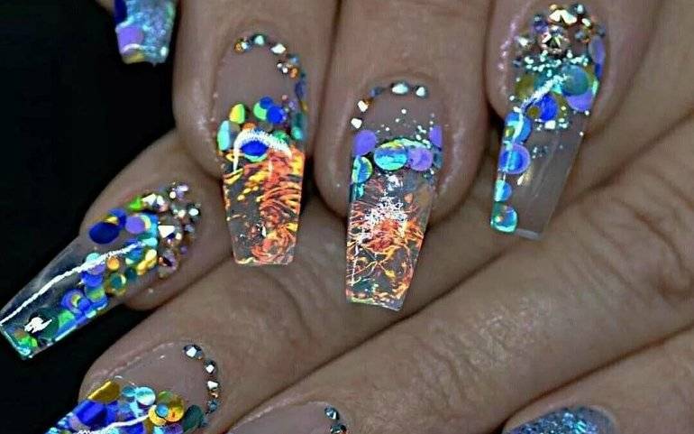 Данная техника появилась сравнительно недавно, но уже завоевала сердца модниц по всему миру. Она отлично подходит для короткой, средней и увеличенной длины, всех форм. С помощью «аквариума» легко подчеркнуть достоинства ручек, скрыть недостатки, создать изумительную картину.