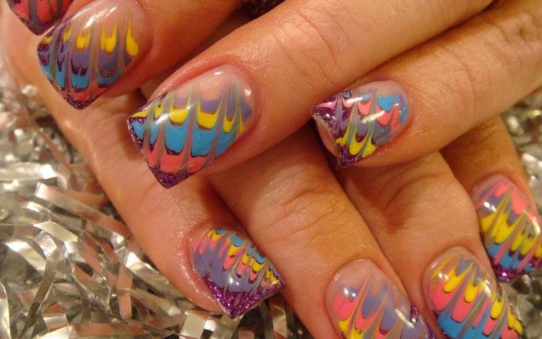 Эта техника покорила сердца многих девушек несколько лет назад. Сегодня она по-прежнему не покидает модные тенденции в мире нейл-арта. Такой маникюр смотрится очень оригинально на ноготках любой длины. Он моментально привлекает к себе взгляды окружающих. Обладательница такого маникюра всегда будет в центре внимания.