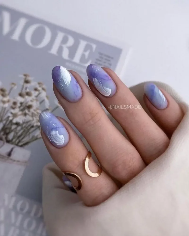 Новинка 2022 года — мазки кистью. Это один из самых простых способов создания креативного рисунка на ноготках. Здесь есть один нюанс: цвета гель-лака должны быть подобраны правильно, сочетаться между собой и создавать неповторимую иллюстрацию.