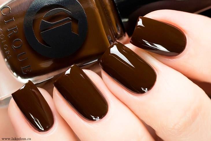 Коричневый оттенок шоколада начинает набирать репутацию среди женского пола. Дополняют этот лак пудровым. Универсален для будней и праздников.