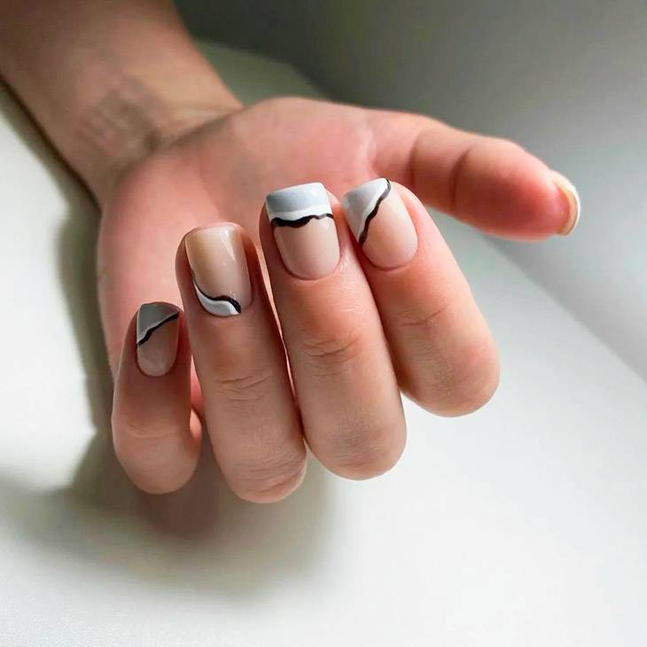 Броская абстракция завоевала списки модных трендов не только в фэшн-индустрии, но и в мире маникюра. Не бойтесь сочетать красочные оттенки и яркий декор. Тандем белого горошка, космических разводов и разнообразных линий — все это смотрится круто и новомодно. С таким дизайном вы будете выглядеть суперстильно и молодежно.