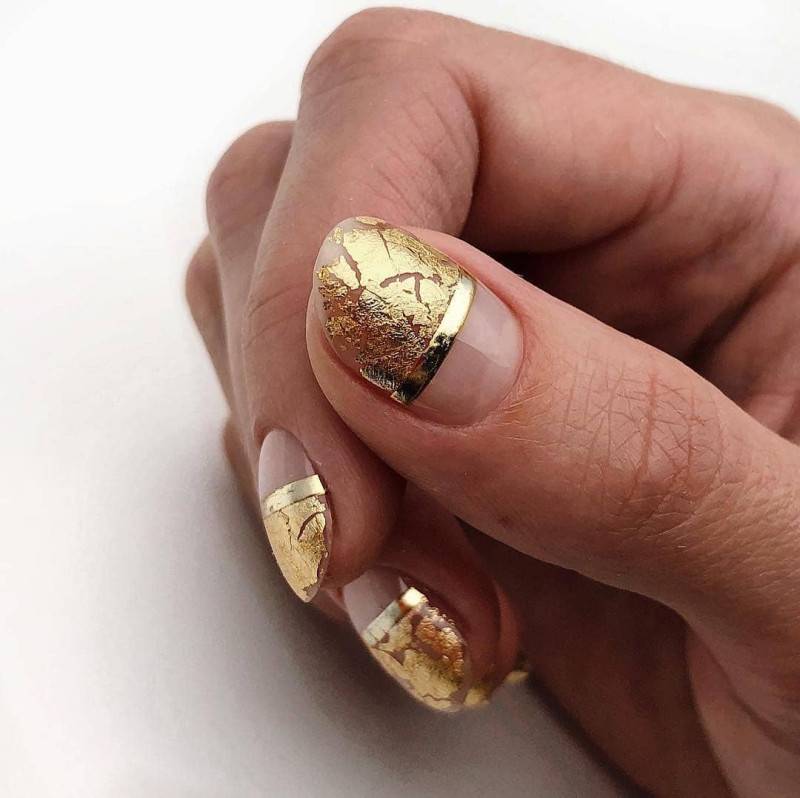 #2 Дизайн ногтей для начинающих с фольгированными лентами