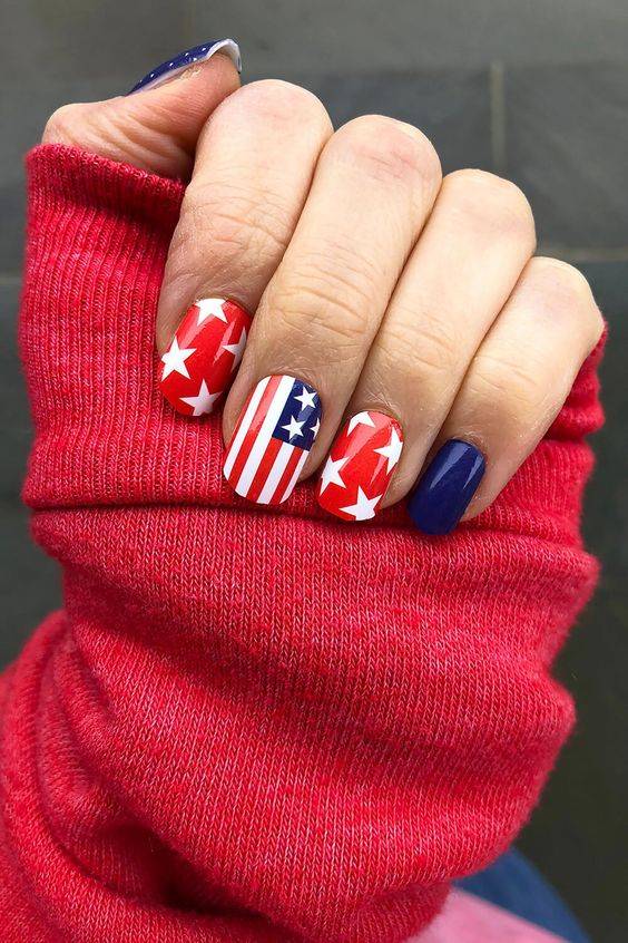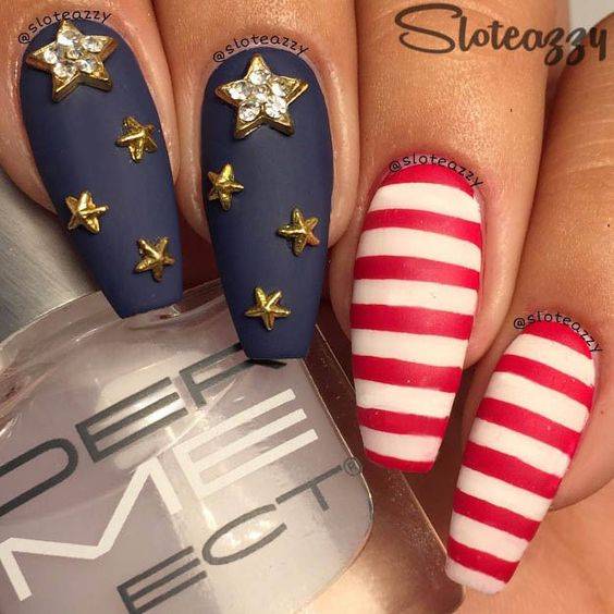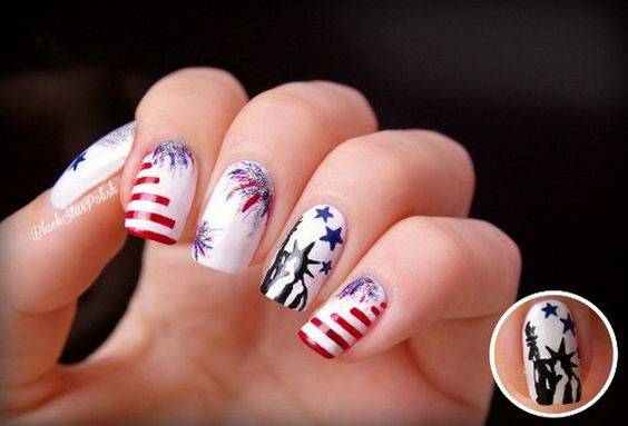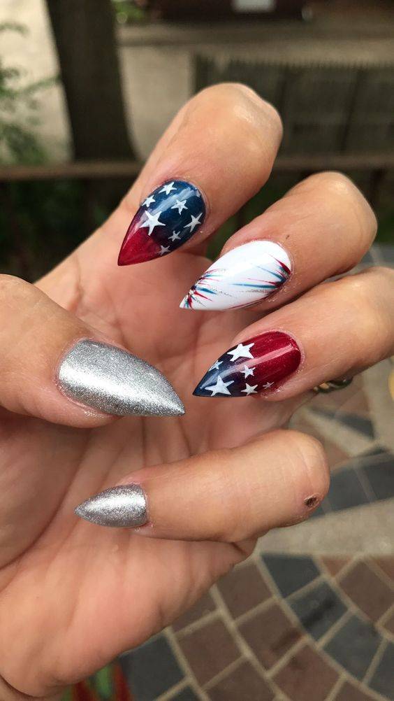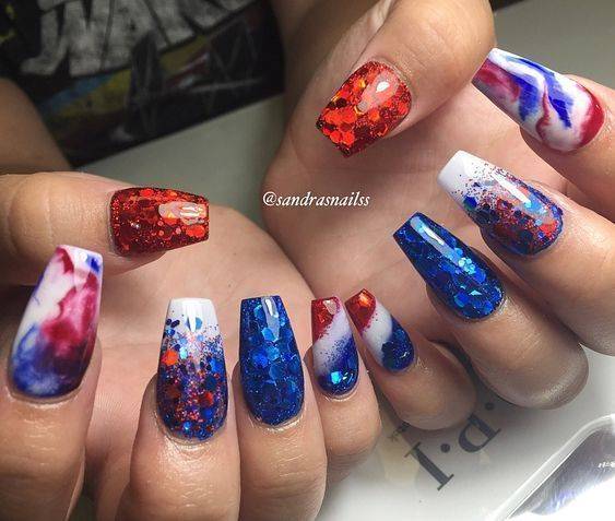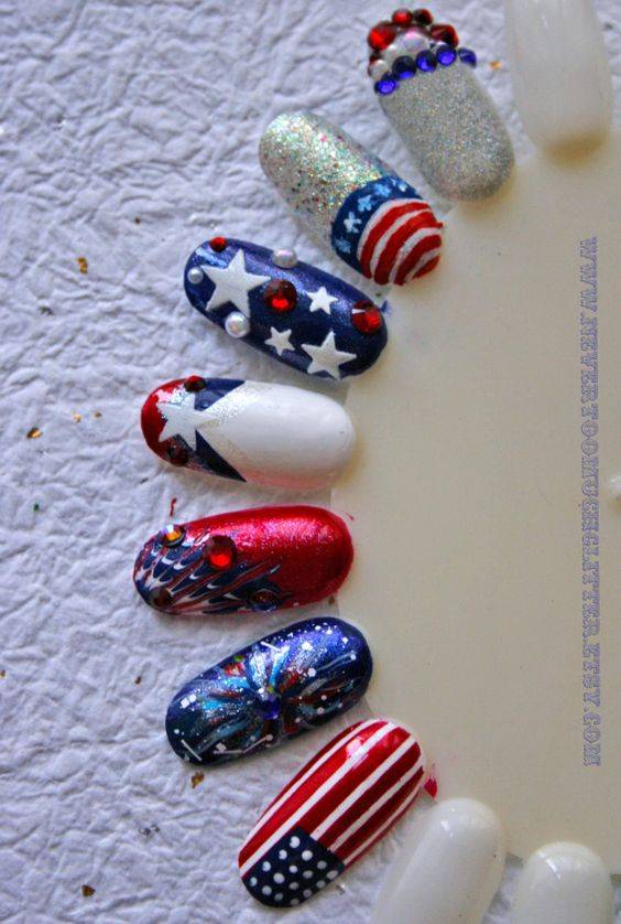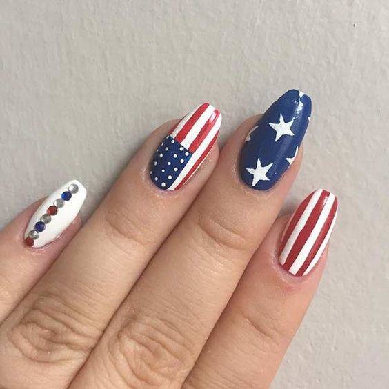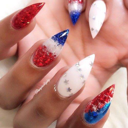Маникюр «американский флаг» фото которого мы предлагаем для просмотра, не оставит вас равнодушными и вы непременно совершите такой маникюр на своих ноготках.