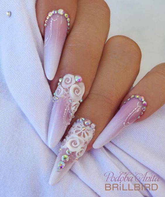Длинные ногти — отличная база для стильного маникюра с любым видом дизайна. Это и стразы, блестки, рисунки, даже лепка, которую многие считают верхом нелепости и пошлости. Да, конечно, такой дизайн часто может выглядеть чрезмерно далеким от стильности. Но при соблюдении правил умеренности и правильно расставленных акцентах, дизайн поразит вас своей новизной и актуальностью. Если у вас длинные ногти, выбирайте абсолютно любой вариант декора.