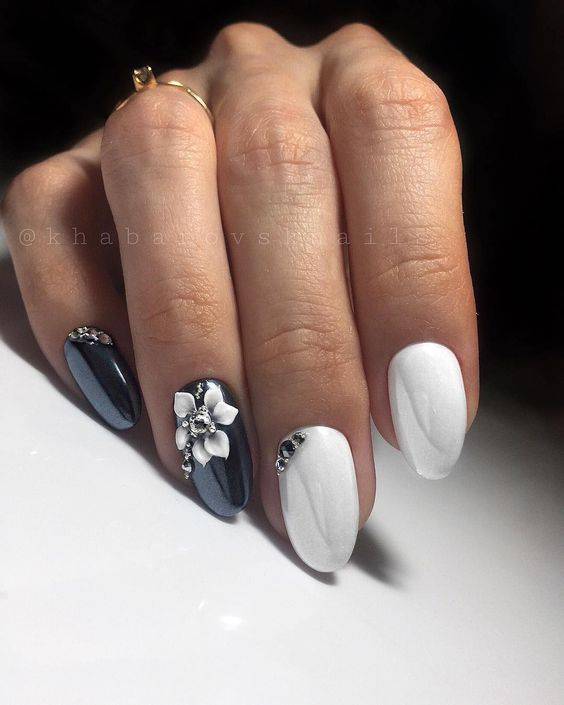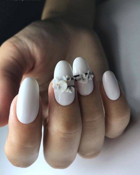 Для коротких ногтей выбор несколько ограничен, но здесь речь идет о том, чтобы сохранить пластину от расслоения и деформации. Кроме того, чрезмерный дизайн может сделать ногти короче визуально, а руки будут выглядеть менее изящными. Придерживайтесь правила соответствия при создании стильного маникюра — если рисунок, то мелкий, стразы — маленькие или акцентные и др.