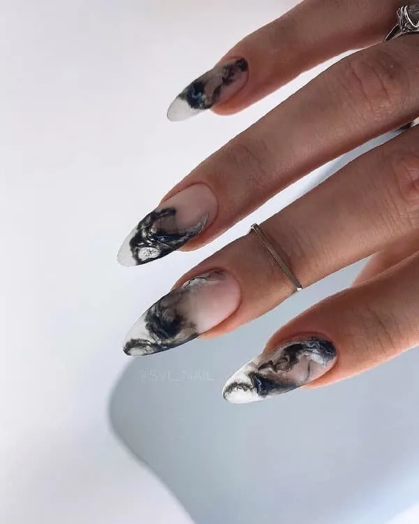 Дымчатый эффект на ногтях отлично смотрится на базе нюдового цвета. Такой дизайн выглядит лаконично и подходит для повседневного использования. В то же время его нельзя назвать скучным!