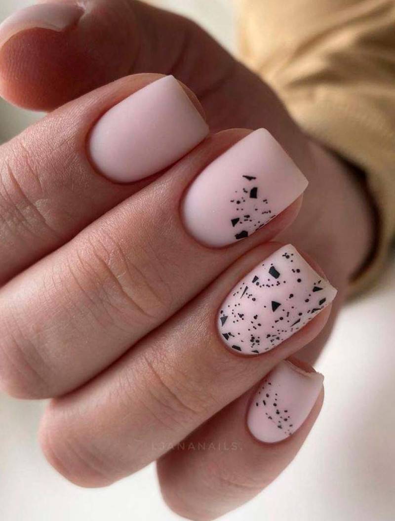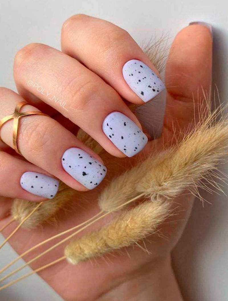 Свою популярность не теряет дизайн «перепелиные яйца», в котором главную роль играет топ с частицами округлой формы. Они рандомно ложатся на ноготь и создают неповторимый дизайн на любом цвете, отлично подойдут как для покрытия на всех пальцах, так и акцента нескольких.
