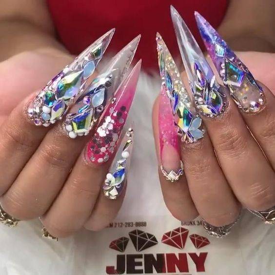 Советы по чтению: Современный маникюр в ярких цветах со стразами
