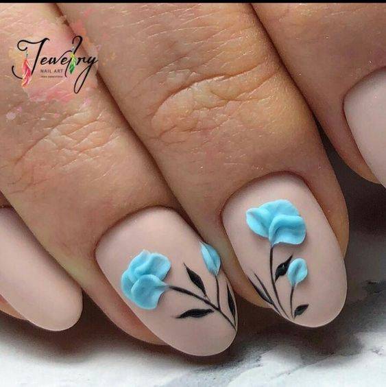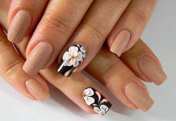 Дизайн акварельными красками сочетается с техникой омбре. На одном лепестке цветка может присутствовать плавный переход оттенков в пределах одного цвета. Акварельный дизайн – это мягкие спокойные оттенки, такие же как сам декор. Конечный результат работы акварельными красками – шедевр нейл-дизайна. Такой декор сложно сравнить с каким-либо другим подобным дизайном. Особенность дизайна акварельными красками в том, что весь узор выполняется вручную, а не слайдерами или трафаретами.