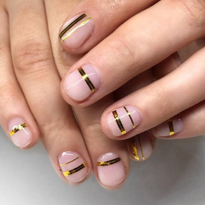 Дизайн выглядит лаконично и изящно. С готовыми полосками можно сделать нейл-арт с узорами, геометрическими фигурами. Техника создания проста: