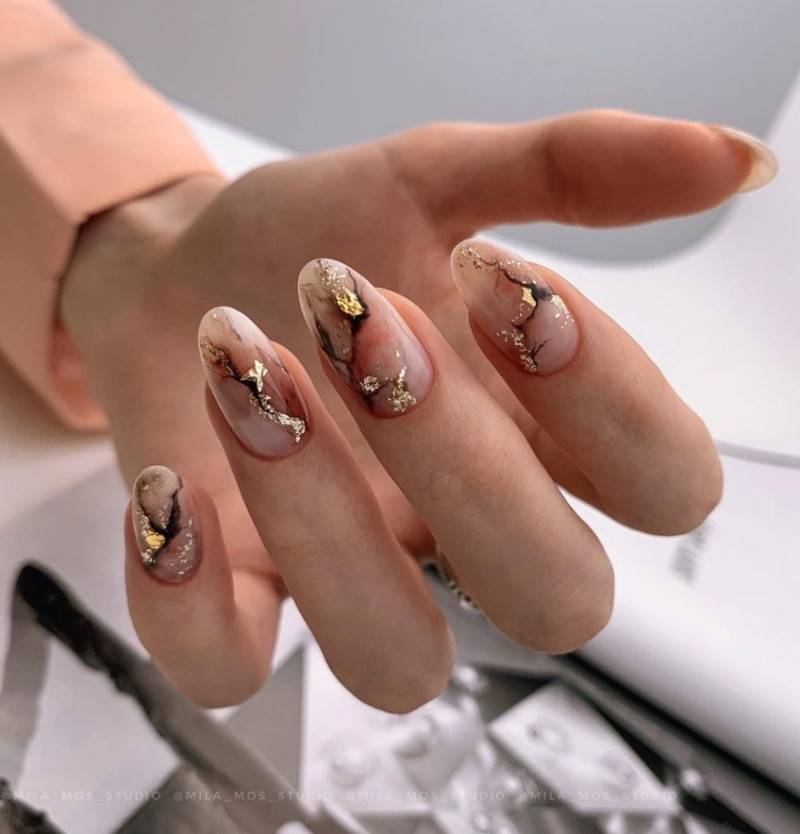Мраморный эффект на короткую длину ногтевой пластины является настоящим пиком популярности в этом сезоне. Эффект переливающегося мраморного камня настолько понравился женщинам, что такой вариант делает хоть раз каждая из них