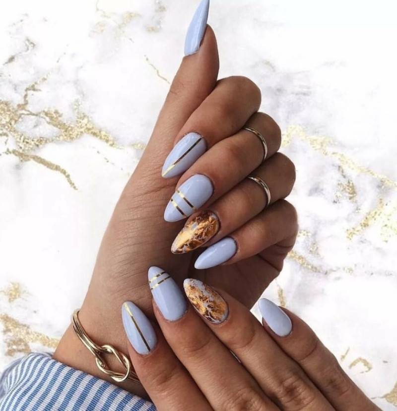 - пыльный голубой (и другие пастельные оттенки) — для повседневного маникюра;