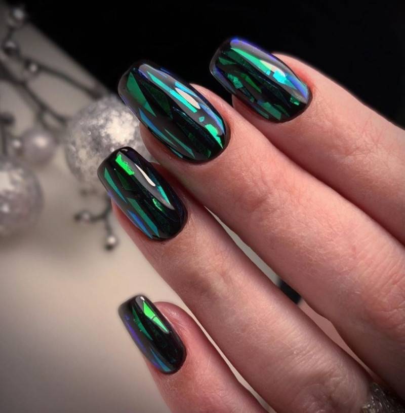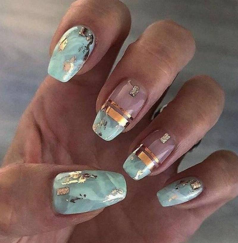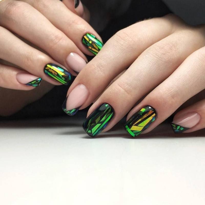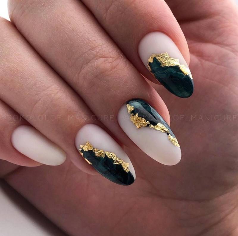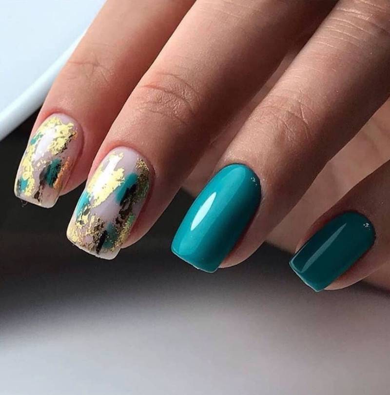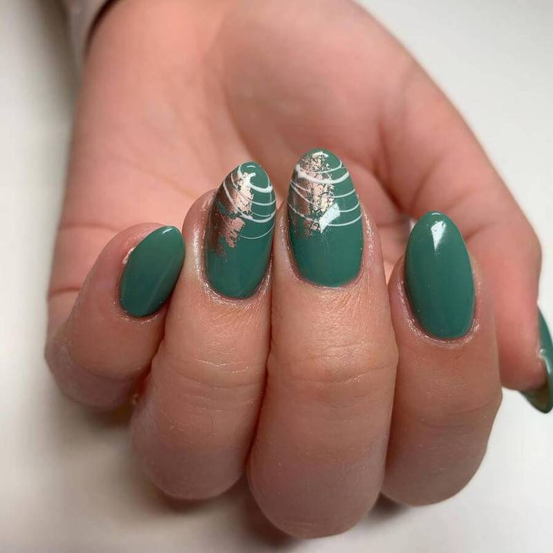 Природные оттенки зелени в комбинации с золотом — один из лучших вариантов нейл-дизайна в сезоне 2021-2022. Яркие цвета радуют глаз и подходят для лета, весны. Зимой с помощью этого тандема можно воплотить в жизнь новогодний дизайн ногтей.