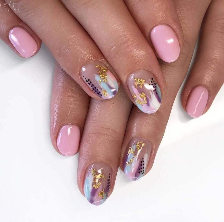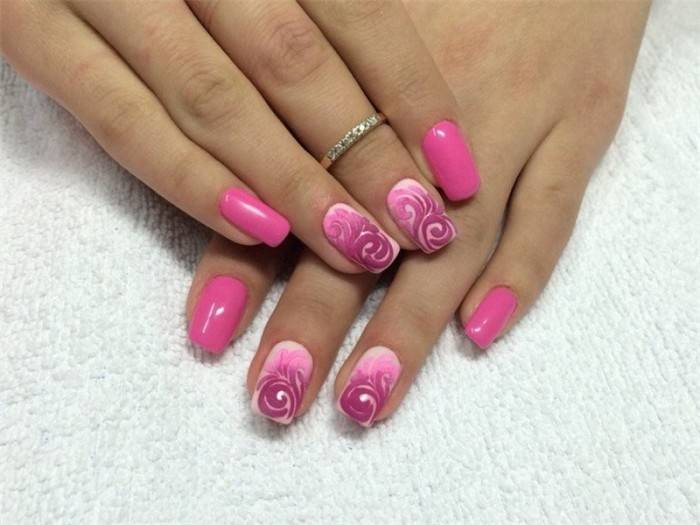 Розовый цвет традиционно используется для маникюра, так как имитирует естественный цвет ногтя. Наиболее частый вариант – это пастельные тона нежно молочного цвета.