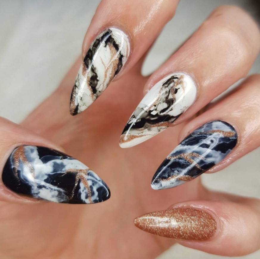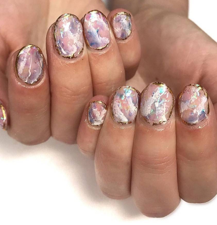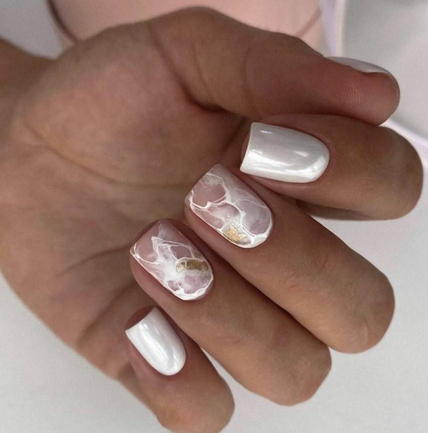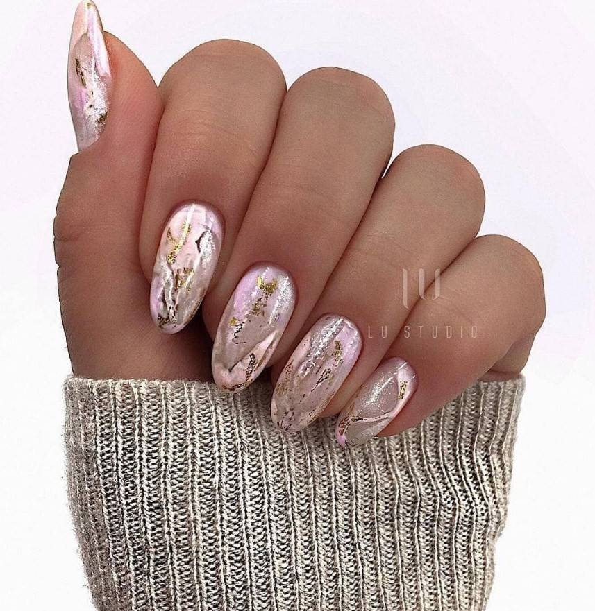 Мраморный эффект на короткую длину ногтевой пластины является настоящим пиком популярности в этом сезоне. Эффект переливающегося мраморного камня настолько понравился женщинам, что такой вариант делает хоть раз каждая из них