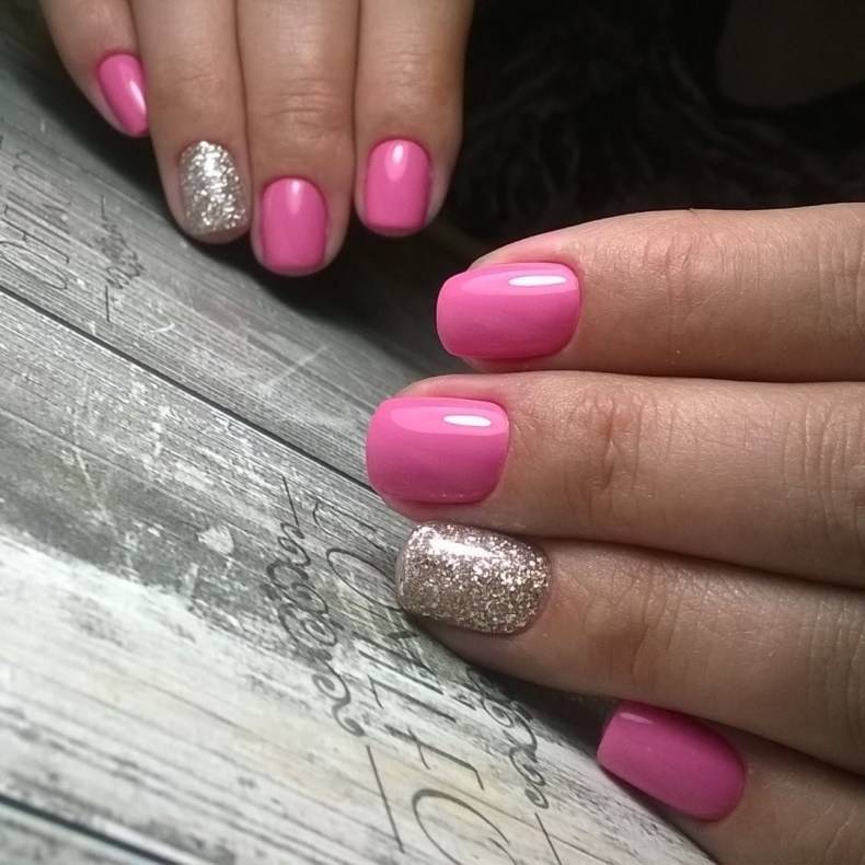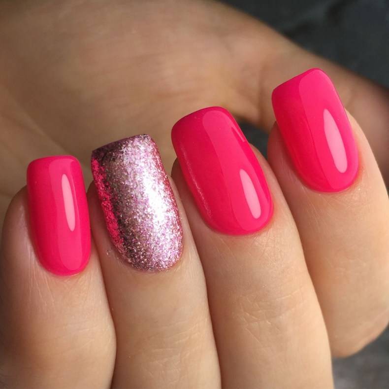 Даже если мы говорим о простых и милых розовых ногтях, вы определенно можете сделать их еще лучше – добавив блеск. Сделайте ваш маникюр стильным и повседневным, нанеся блестки только на один палец – это может быть безыменный палец или мизинец.