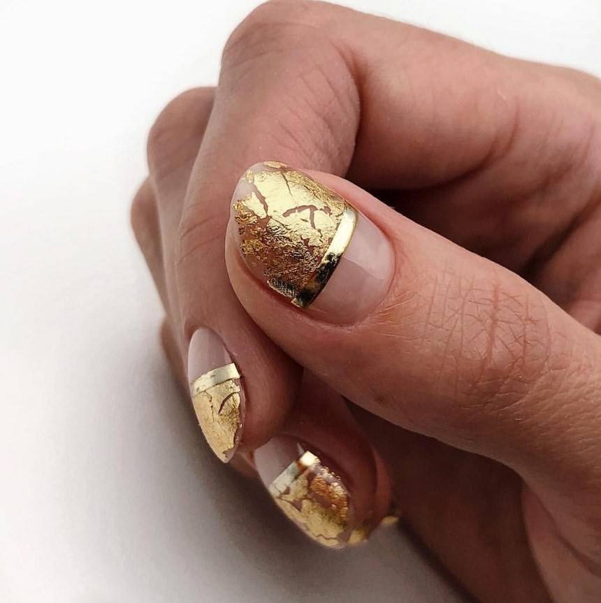 В таком варианте дизайна фактически сочетаются два оттенка золота — привычное желтоватое и благородное розовое. Первый станет удачным способом разнообразить повседневный маникюр или сделать его более праздничным при необходимости.
