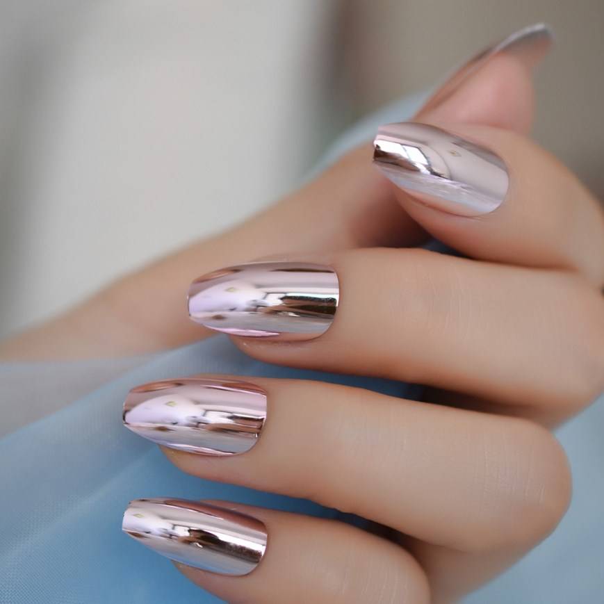 Два ярких оттенка металла можно сочетать в одном нейл-дизайне. Особенно это актуально, если необходим праздничный маникюр