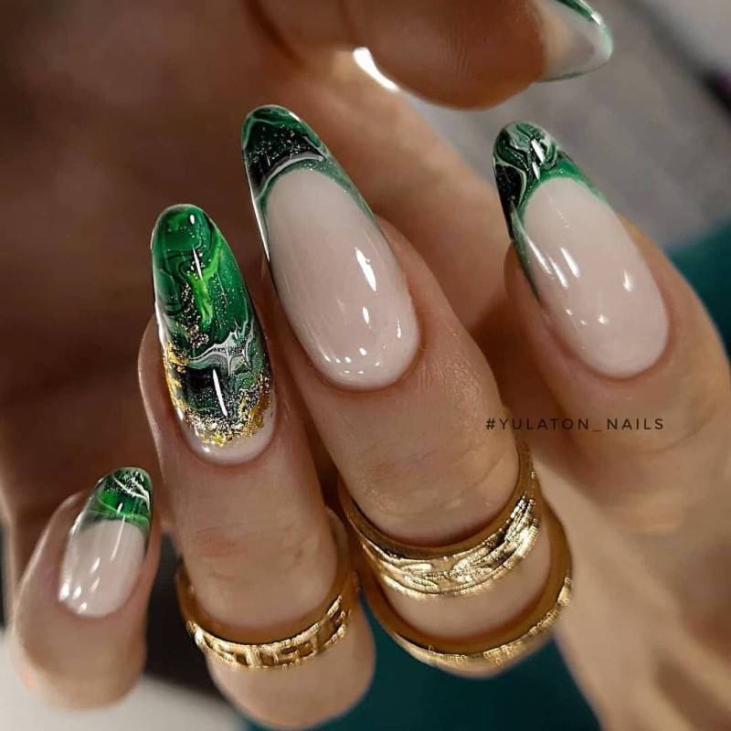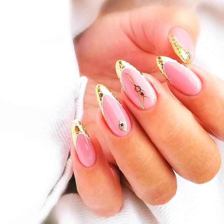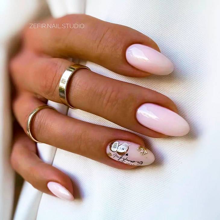 Миндальный нежный маникюр красиво смотрится в следующих техниках оформления: