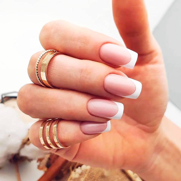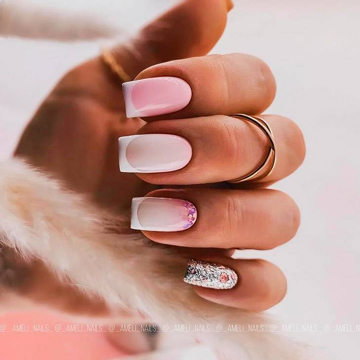 Нежный маникюр на мягком квадрате востребован в следующей технике: