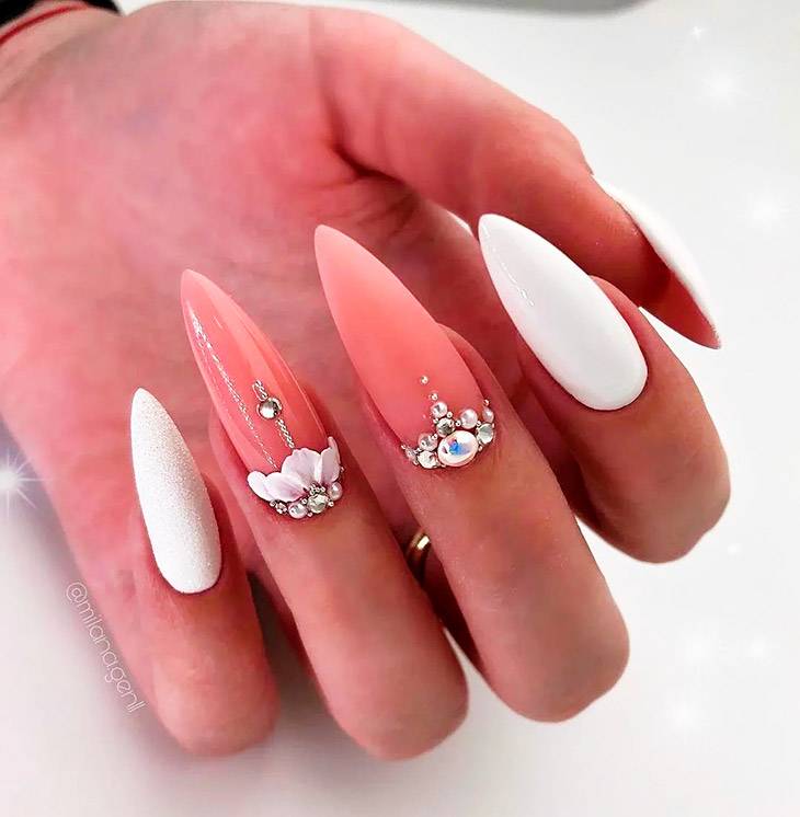 Острые ногти на первый взгляд кажутся агрессивными, но нейл-мастера готовы развеять эту иллюзию, и все благодаря нежному маникюру.