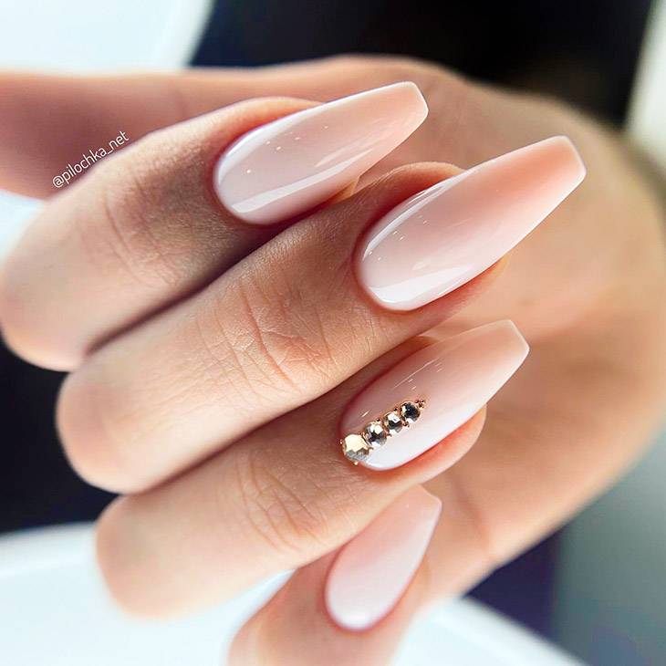 Форма балерины настолько гармонична, что даже однотонное молочное или нюдовое покрытие будет самодостаточным.