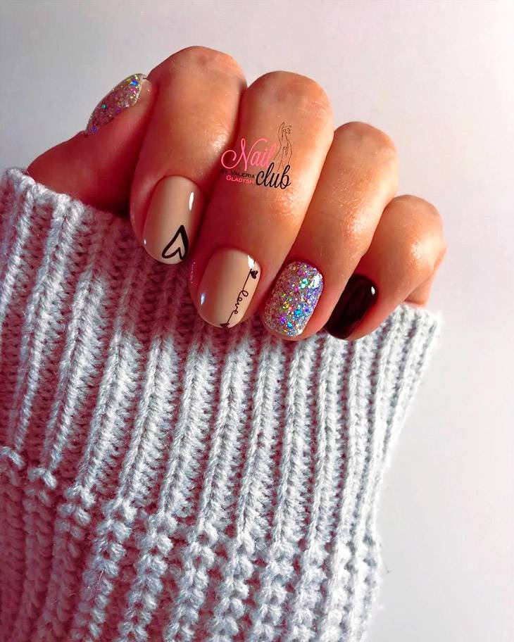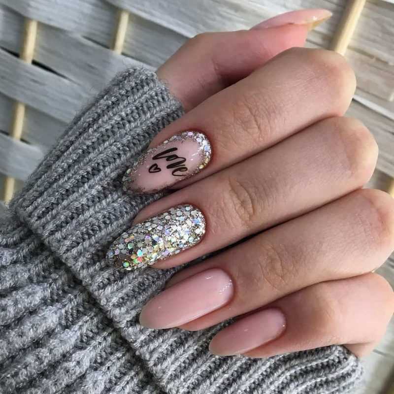 - Однотонный маникюр с блестками или глиттером будет выглядеть очень эффектно.