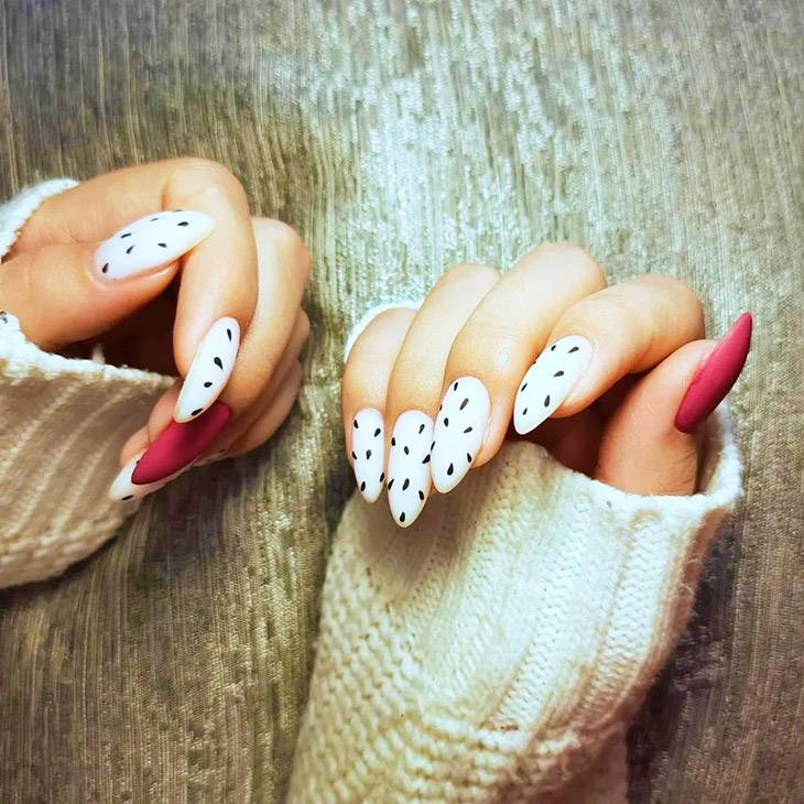 - Эта форма ногтей выглядит как лепесток цветка, поэтому для нее подойдут яркие и насыщенные оттенки.