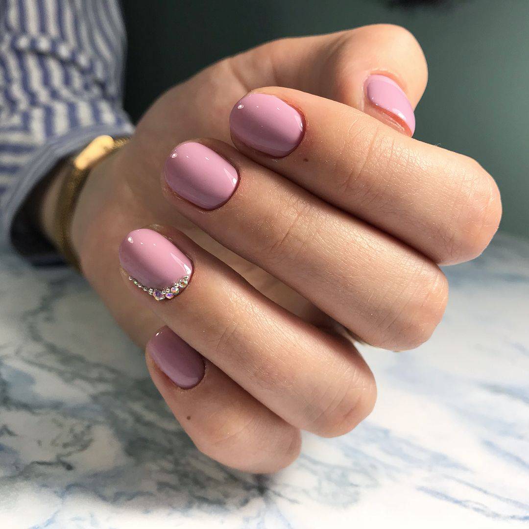 Любительницам коротких ногтей стоит присмотреться к таким цветам как лиловый, лавандовый, небесный и пыльная роза. Небольшая длина — это практично и к тому же стильно, особенно в сочетании с женственными нежными оттенками.
