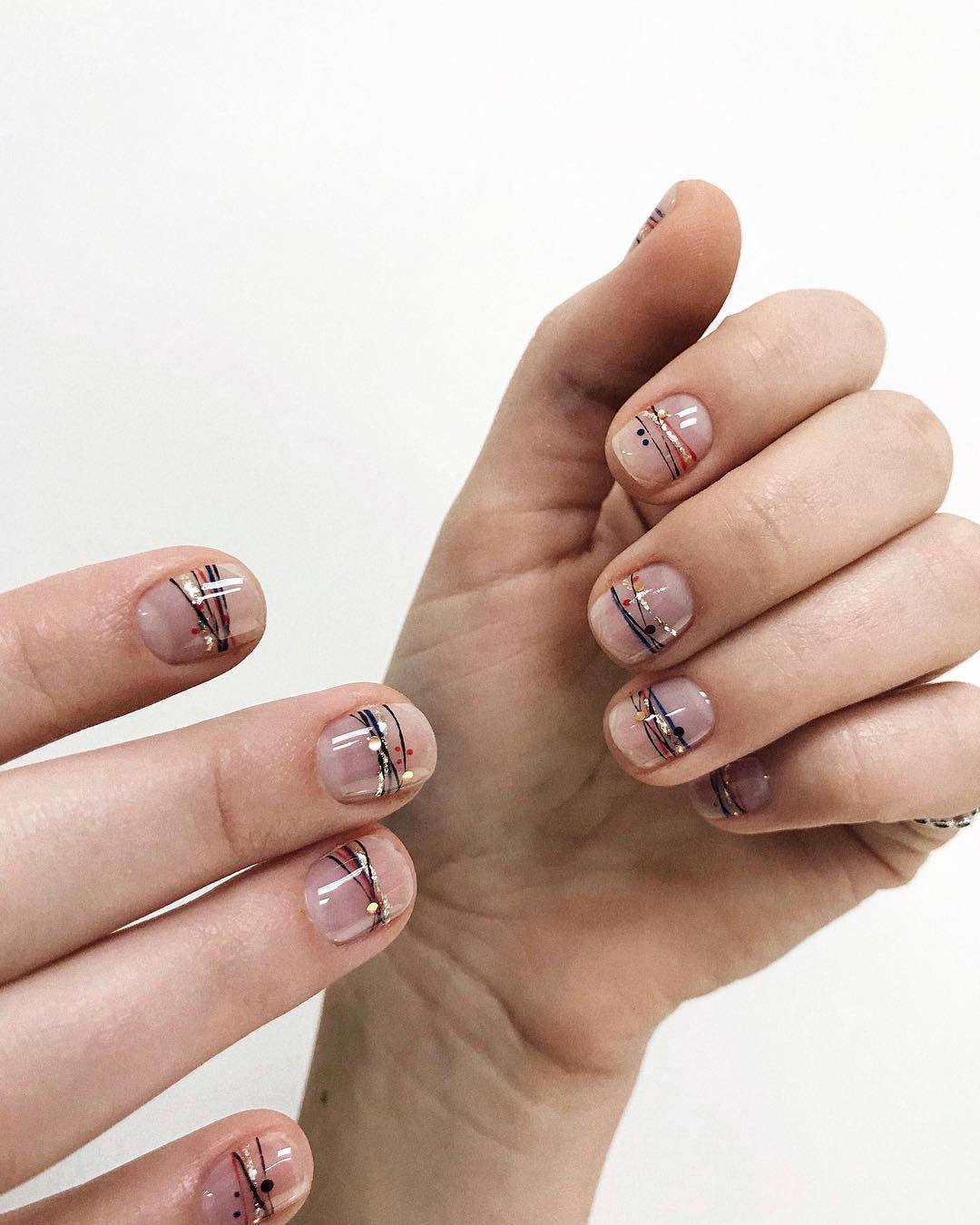 Милые нежные ногти вы можете оформить рисунками в минималистическом стиле, который благоволит к крохотным точкам, линиям, завиткам, микро рисункам.