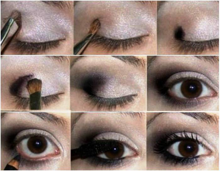 Далее переходите к нанесению теней, соблюдая при этом важное правило — идем от светлых теней к более темным. После нанесения теней их следует растушевать с помощью особой мягкой кисточки, совершая движения от переносицы к вискам