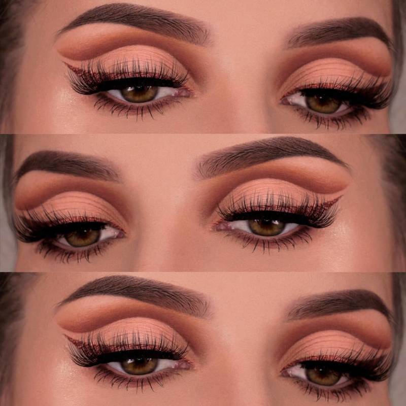 - После все подвижное веко прокрашиваем коричневыми тенями, которые помогут создать мягкий переход между цветами. Складку между бровью и веком красим темно-коричневым, бордовым или даже черным, особенно это выигрышно будет смотреться для глубоко-посаженных глаз;